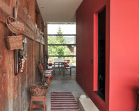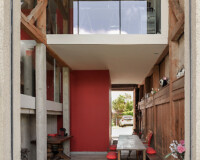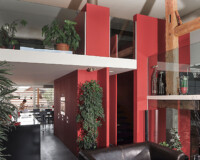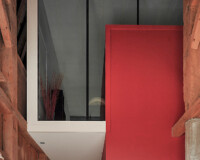 Les éléments d’ importance, parois bois, porte de grange, structure porteuse, sont intégrés dans les volumes habitables. La fourragère non chauffée participe à l’ appartement par la transparence offerte. Une interaction se crée entre l’ ancien volume agricole et le logement contemporain.