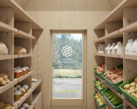 L’architecture générale reprend les codes géométriques des toitures des fermes d’alpages et de leurs cheminées. L’intérieur est agencé par un module unique d’étagère inspiré des caves à fromages régionales, appartenant elles aussi au patrimoine local.