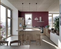 Deux ouvertures majeures sont percées sous forme de bow-window afin d’éclairer l’espace cuisine-repas à l’est et le séjour au sud-ouest. Elles permettent également l’accès aux deux terrasses bois extérieures.